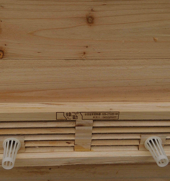4、通斜底條。脫粉過程中,有些小顆?;ǚ勖撀鋾r被代進脫粉圈內(nèi)岸時,無法通過45度斜坡落入接粉盒。當蜜蜂進入蜂箱的同時。無形中把這些有顆粒花粉代落到通斜底條上,由于光亮度的引導,大部分蜜蜂都從通斜底條上的雙排斜對列底圈出勤,從而把小顆?;ǚ鄞虢臃酆小?/span>